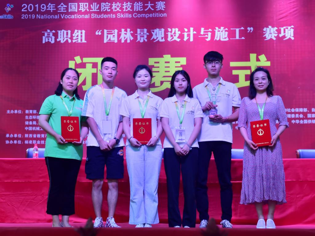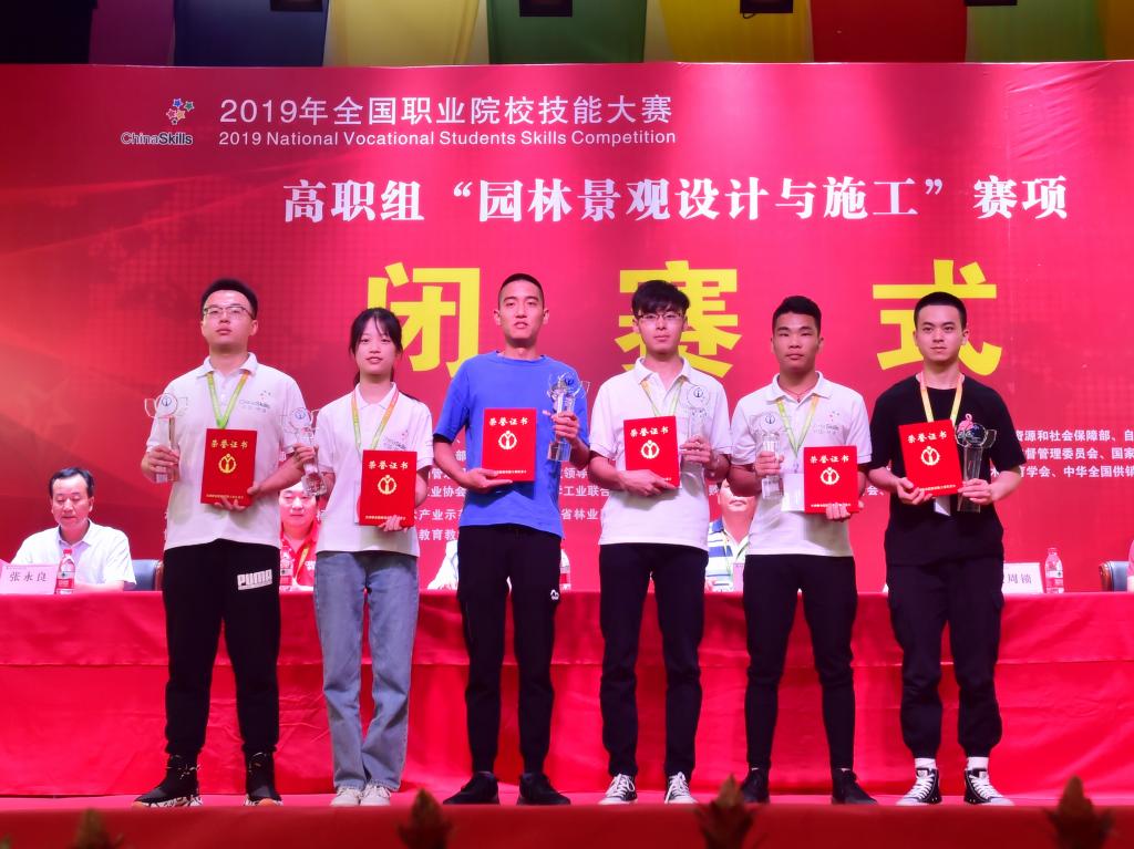 6月3日上午,我院学生参加全国职业院校技能大赛再传喜讯。在刚刚闭赛的2019年全国职业院校技能大赛(高职组)“园林景观设计与施工”赛项中,由我院林思、唐璇、贺涵、蔡鹏4名学生组成的代表队,在本次赛项中取得了一等奖的好成绩。