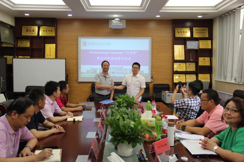 7月3日,Schlumberger(斯伦贝谢集团)旗下的Cameron-Schlumberger(卡梅隆-斯伦贝谢公司)生产部总经理NI AIHUA、人事部经理Caroline Chan、授权公司经理SIENGENG GUAN(盛勇源)一行来访我院,并与机电工程分院签订“订单班”合作框架协议。