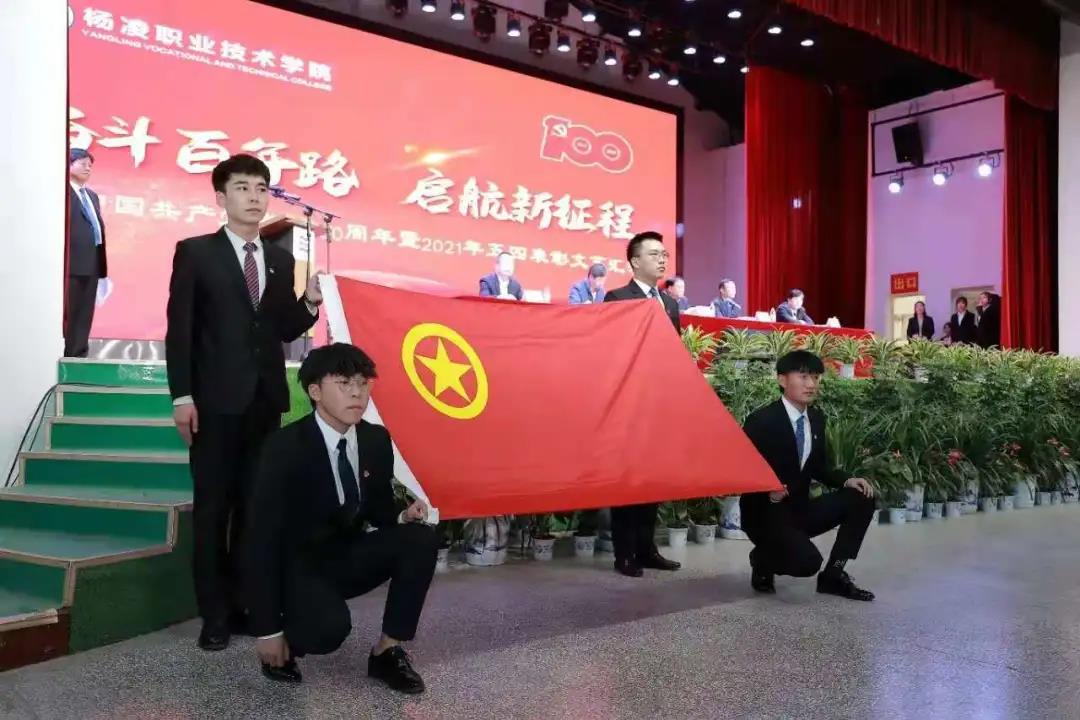 大会分为两个阶段。第一阶段的表彰大会作了工作报告,宣读了《共青团杨凌职业技术学院委员会关于表彰2020-2021学年度先进集体及先进个人的决定》,表彰了五四红旗团总支、先进团支部、优秀共青团干部、优秀共青团志愿者等先进集体和个人。22名新团员代表进行了入团宣誓仪式。