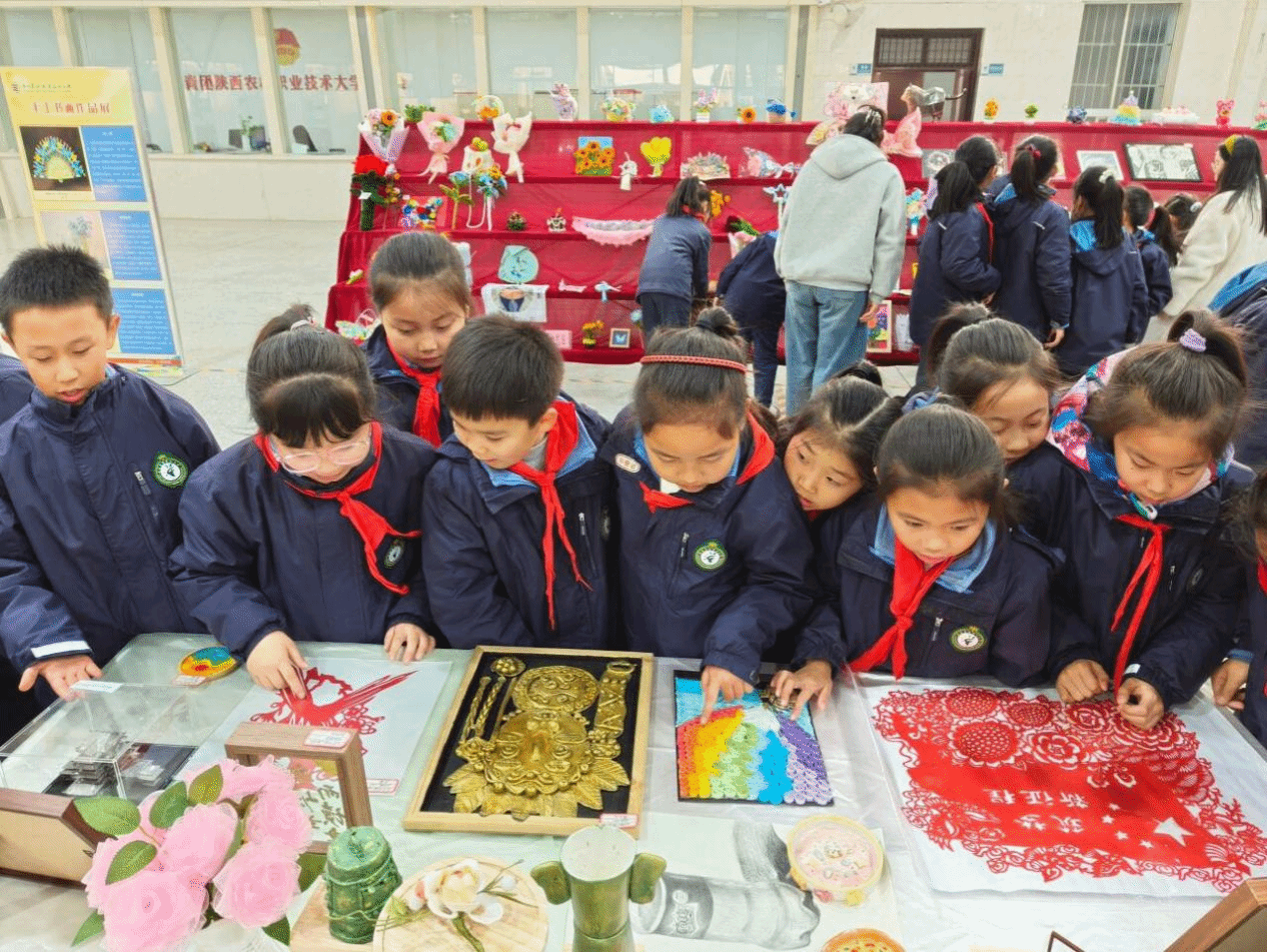 近日,杨凌高新第四小学100余名师生来校,参观首届美育文化艺术节学生美育实践课作品展。
