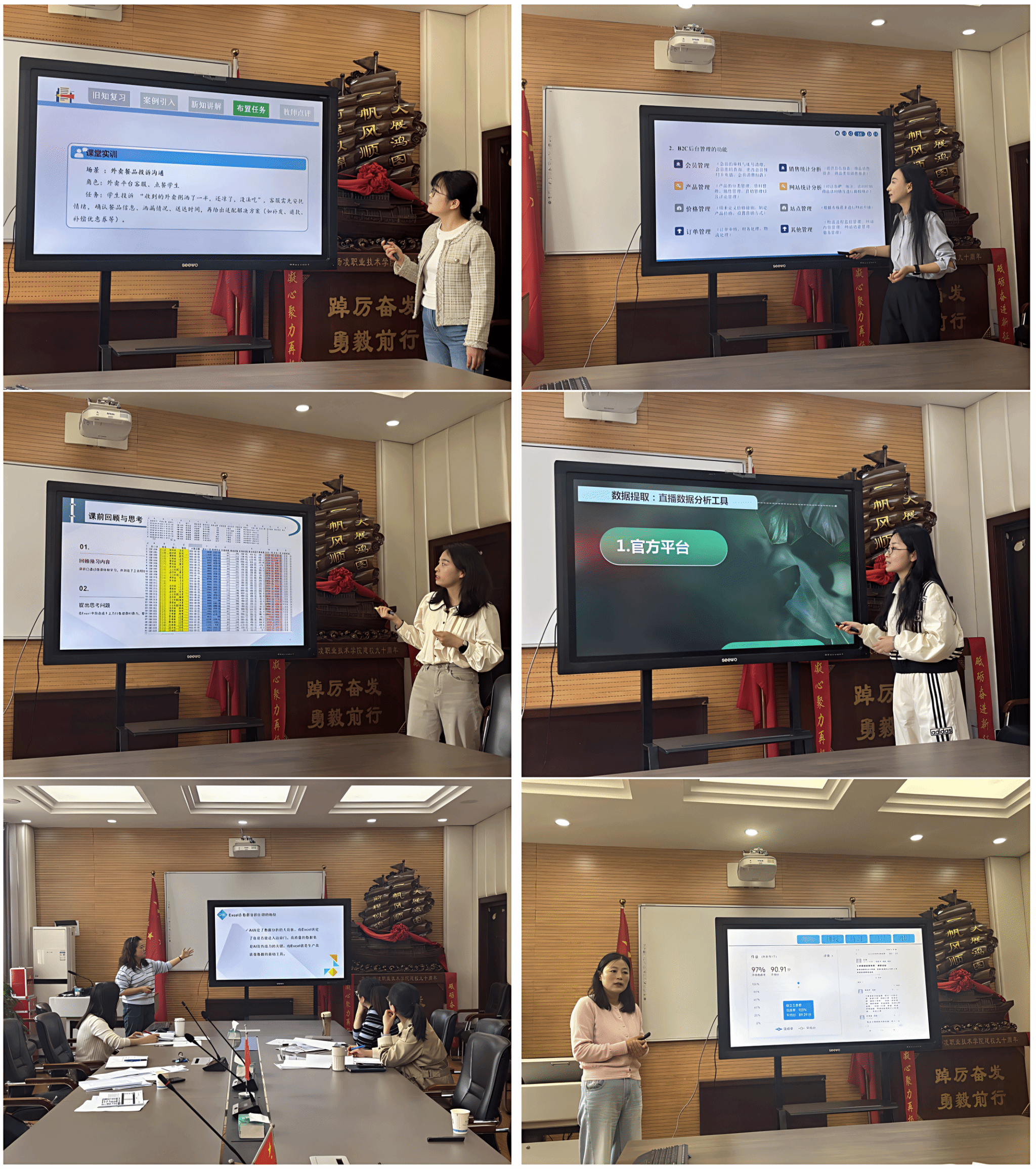 参赛教师围绕《客户服务与管理》《电子商务概论》《财务大数据分析》《直播复盘与数据分析》《数据应用与分析》《Excel在财务中的应用》等课程的重点知识、技能要点进行了精彩展示。3位专家评委,依据评分细则,对教学大纲、教学设计进行集中评审,并提出了进一步改进建议。