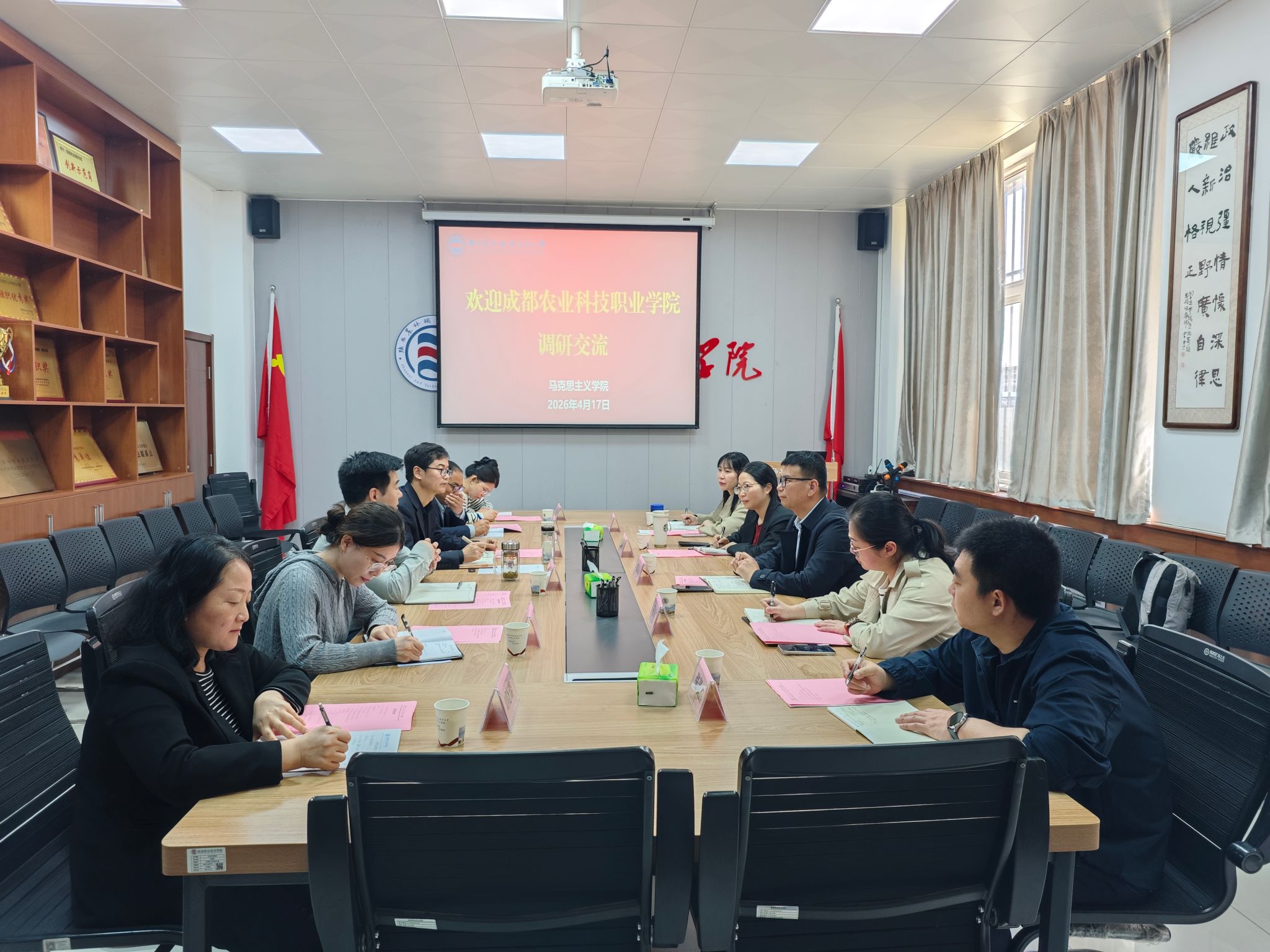 4月17日,成都农业科技职业学院马克思主义学院党总支书记、院长郑海龙,副院长赵静一行5人来校考察交流,我校马克思主义学院负责人等参加座谈。
