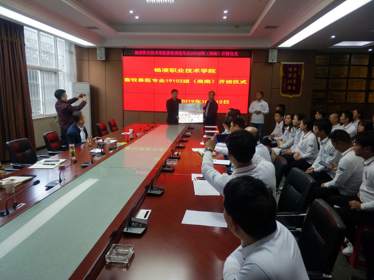 10月12日,我院首届畜牧兽医专业新型职业农民学历提升班开班仪式在商南县丰联农牧公司会议室举行。动物工程分院负责人、教师代表、丰联农牧公司相关领导以及该公司38名学员参加了开班仪式。