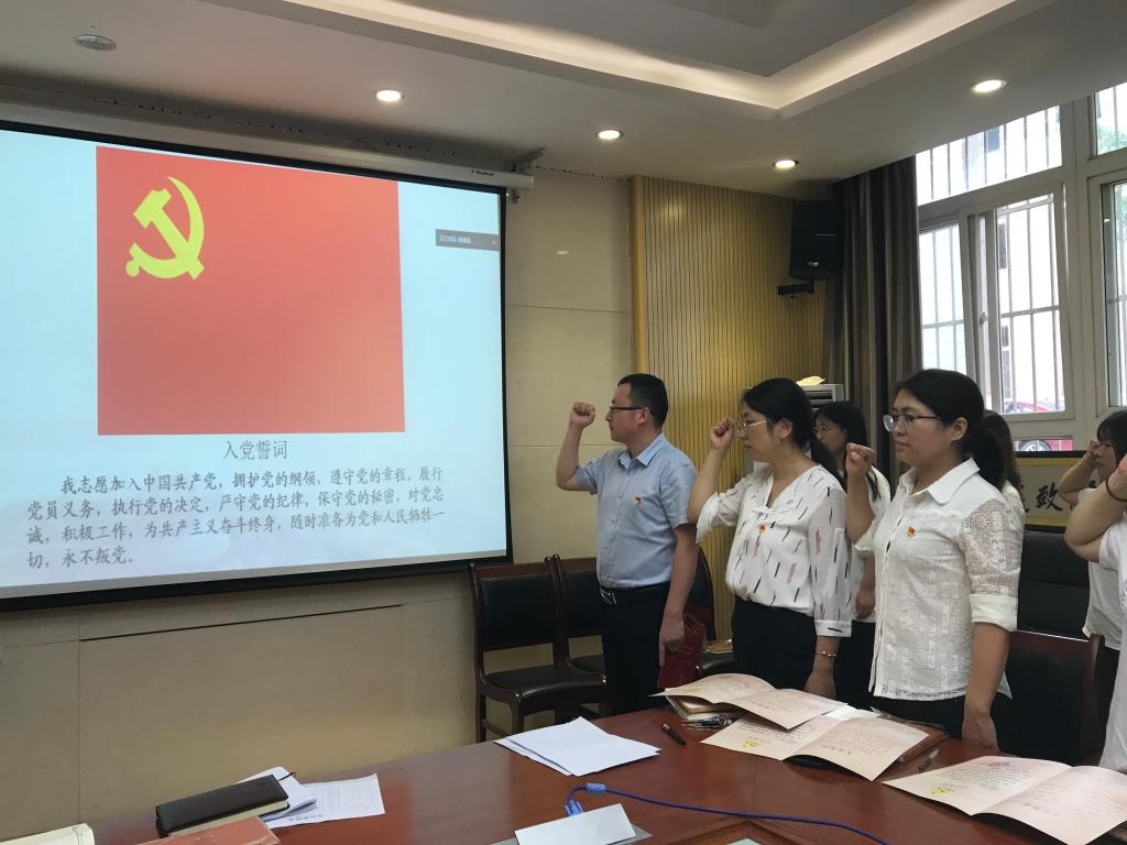 组织生活会上,全体师生党员面对党旗,重温入党誓词。药物与化工分院党总支为每位党员颁发《党员政治生日卡》和政治理论学习记录本。生日卡和记录本印有入党誓词和“不忘初心,牢记使命”总要求,填写了党员姓名和入党日期,提醒党员不忘入党初心,坚定理想信念,勇于担当使命,忠实履行入党誓词。