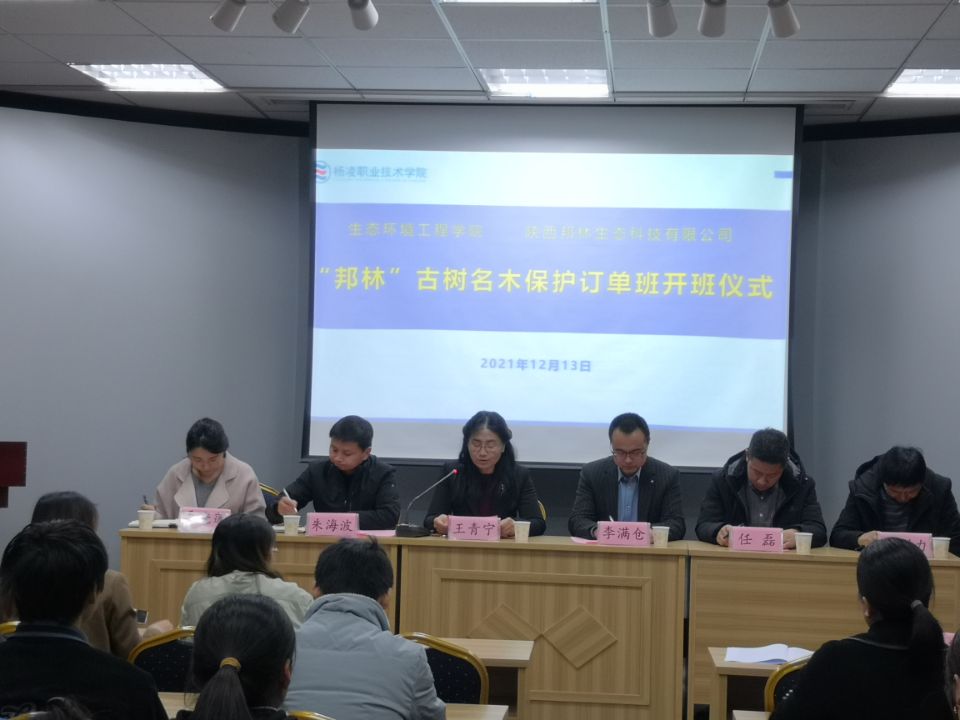 据了解,2020年,学校生态环境工程学院陕西邦林生态科技有限公司签订合作协议,成立了古树名木保护中心,并联合申报了陕西省林科院科技创新计划项目,完成了西安兴庆宫公园古树保护项目。此次加入“邦林”古树名木保护订单班的14名学生,将按照培养方案和相关要求,不断提升专业知识和技术技能,为古树名木保护领域做出贡献。