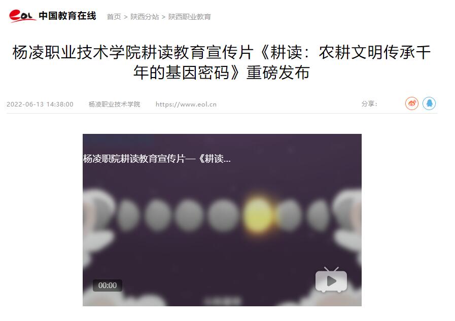 【中国教育在线】杨凌职业技术学院耕读教育宣传片《耕读:农耕文明传承千年的基因密码》重磅发布