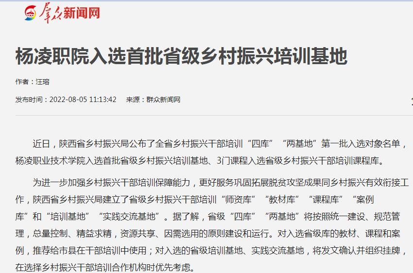 【群众新闻网】杨凌职院入选首批省级乡村振兴培训基地