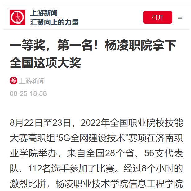 【上游新闻】一等奖,第一名!杨凌职院拿下全国这项大奖