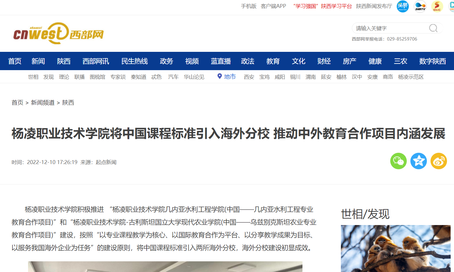 【西部网】杨凌职业技术学院将中国课程标准引入海外分校 推动中外教育合作项目内涵发展