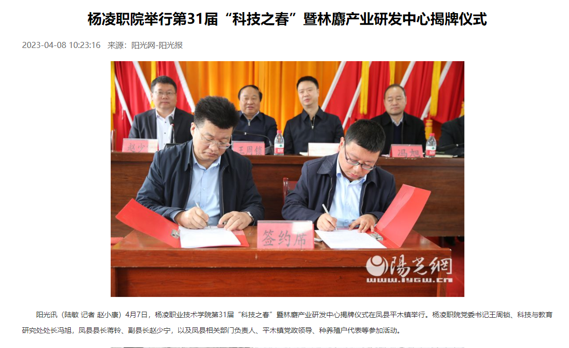 【阳光网】杨凌职院举行第31届“科技之春”暨林麝产业研发中心揭牌仪式
