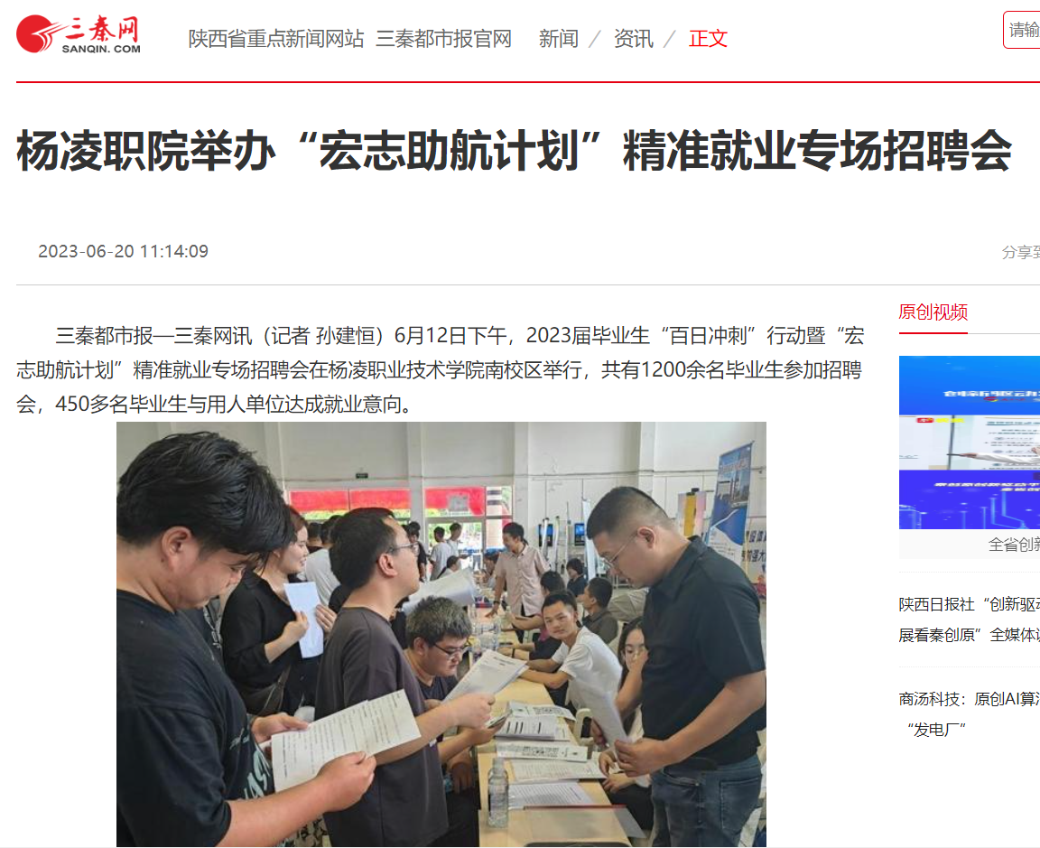 【三秦都市报】杨凌职院举办“宏志助航计划”精准就业专场招聘会