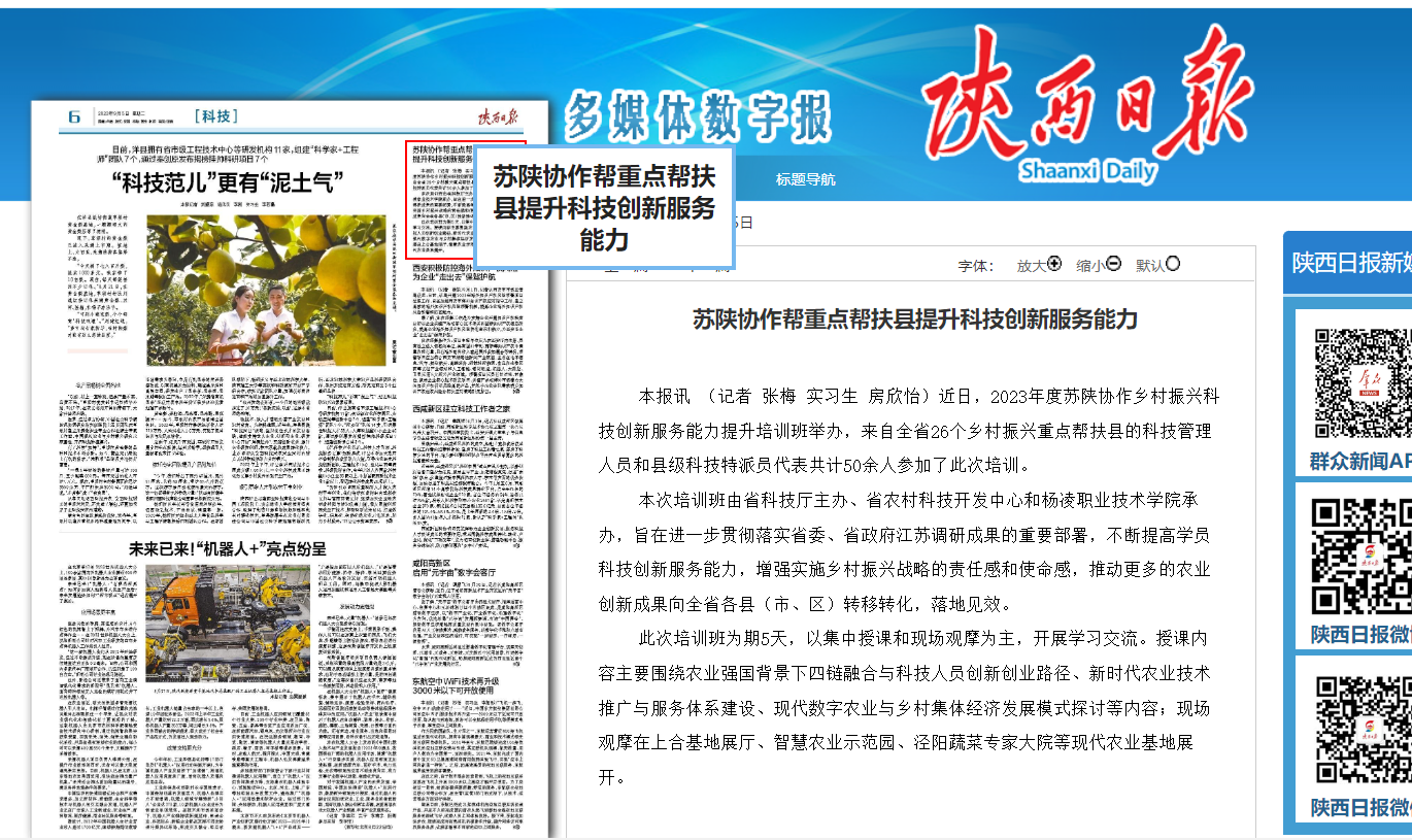 【陕西日报】苏陕协作帮重点帮扶县提升科技创新服务能力