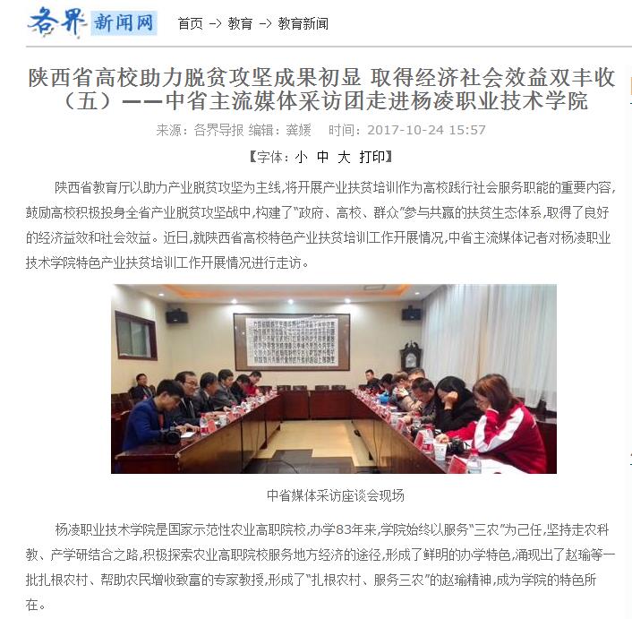 【各界导报】中省主流媒体采访团走进杨凌职业技术学院