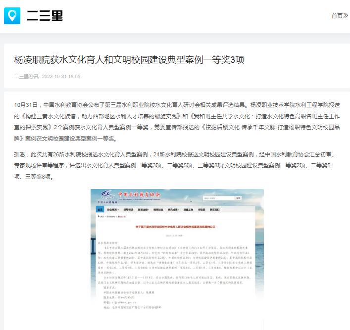 【二三里】杨凌职院获水文化育人和文明校园建设典型案例一等奖3项