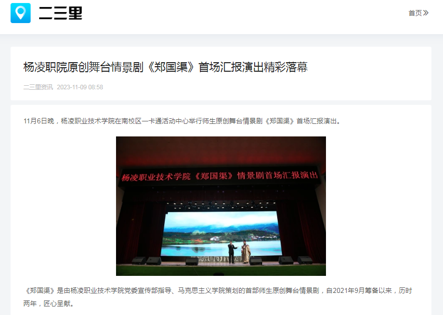 【二三里】杨凌职院原创舞台情景剧《郑国渠》首场汇报演出精彩落幕