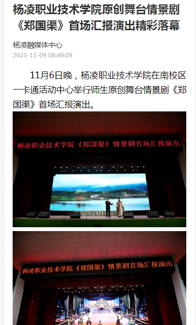 【杨凌融媒体中心】杨凌职业技术学院原创舞台情景剧《郑国渠》首场汇报演出精彩落幕