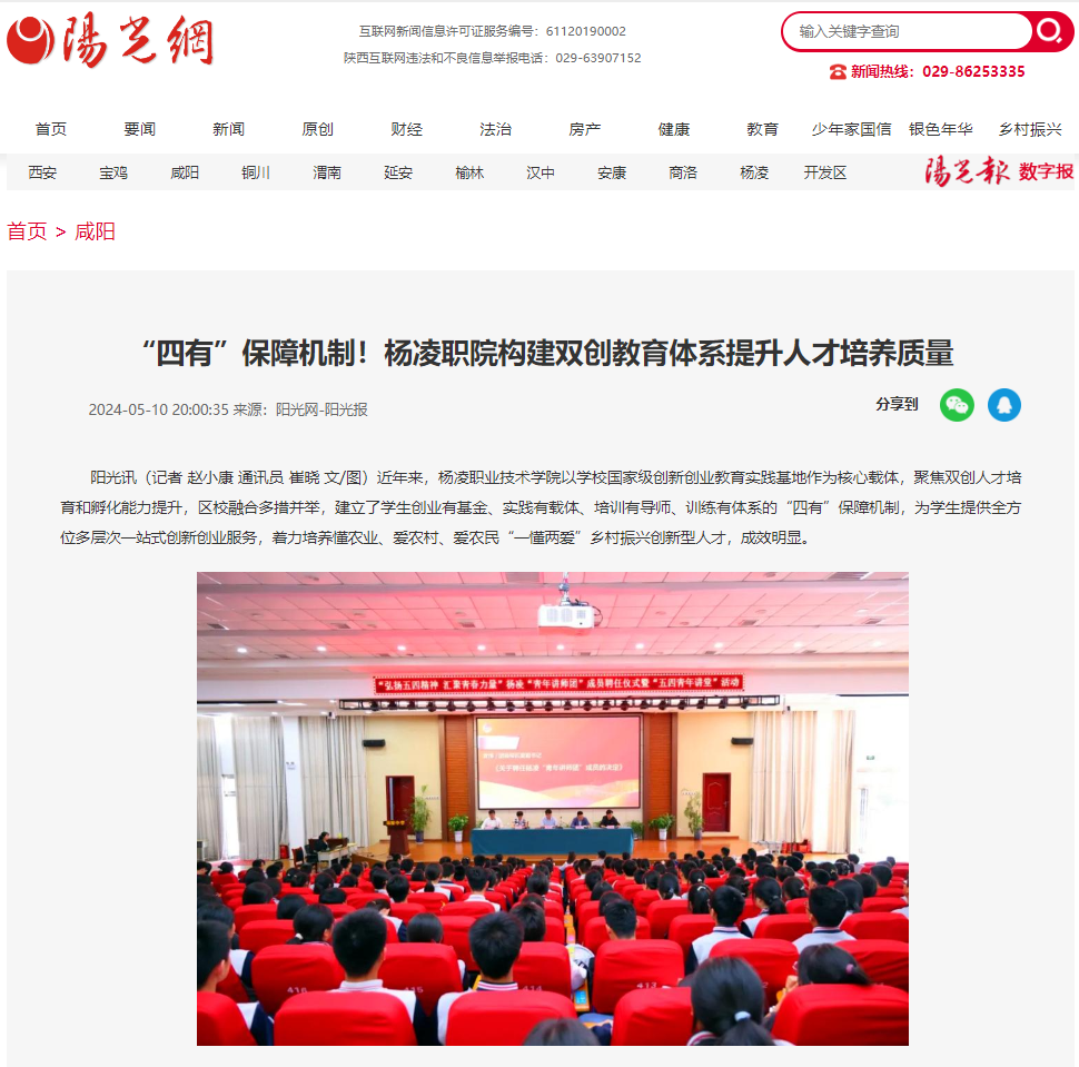 【阳光网】“四有”保障机制!杨凌职院构建双创教育体系提升人才培养质量