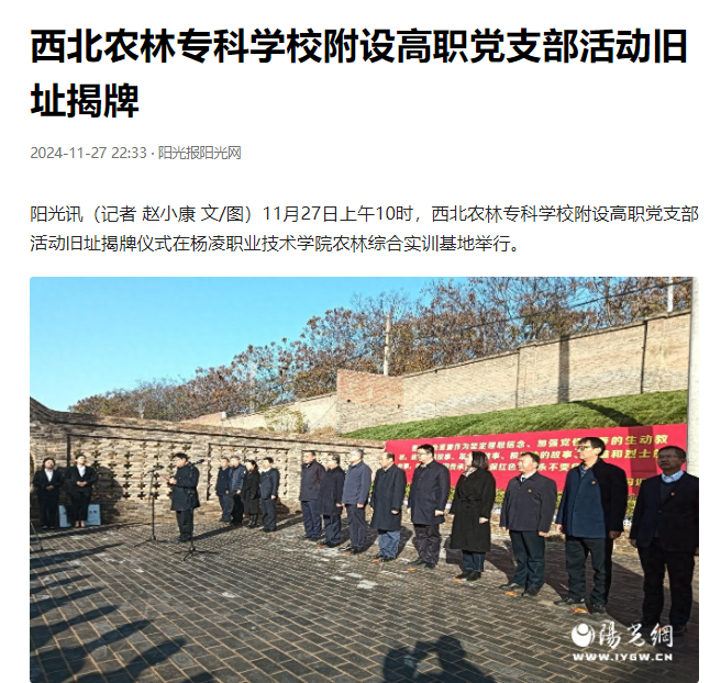 1127日上午10时,西北农林专科学校附设高职党支部活动旧址揭牌仪式在杨凌职业技术学院农林综合实训基地举行。