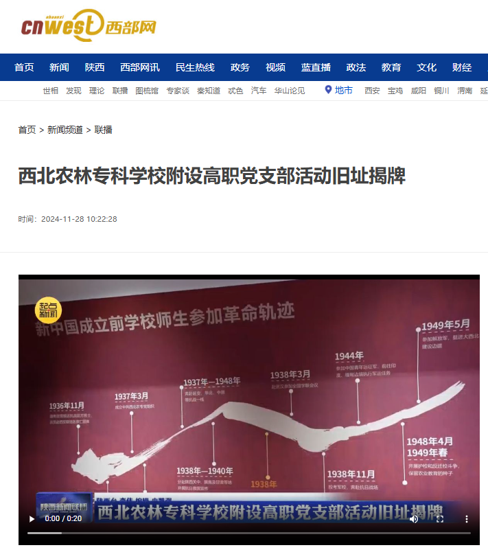 【陕西网络广播电视台】西北农林专科学校附设高职党支部活动旧址揭牌