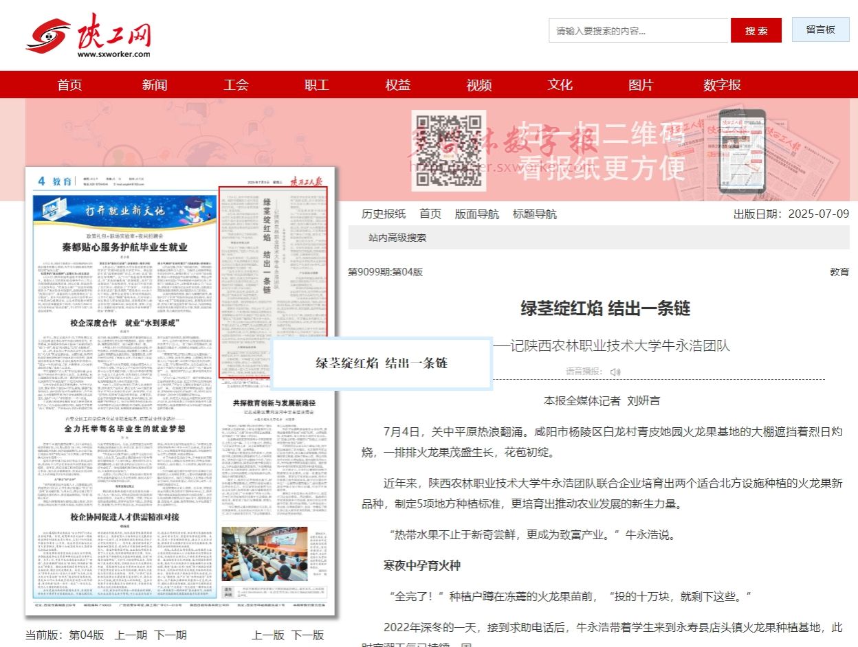 【陕西工人报】绿茎绽红焰 结出一条链——记陕西农林职业技术大学牛永浩团队