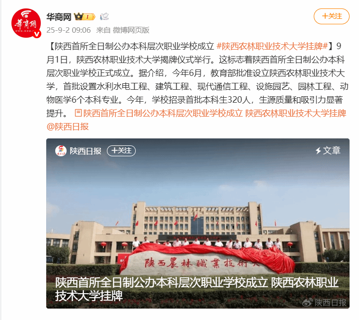 【华商网】陕西首所全日制公办本科层次职业学校成立