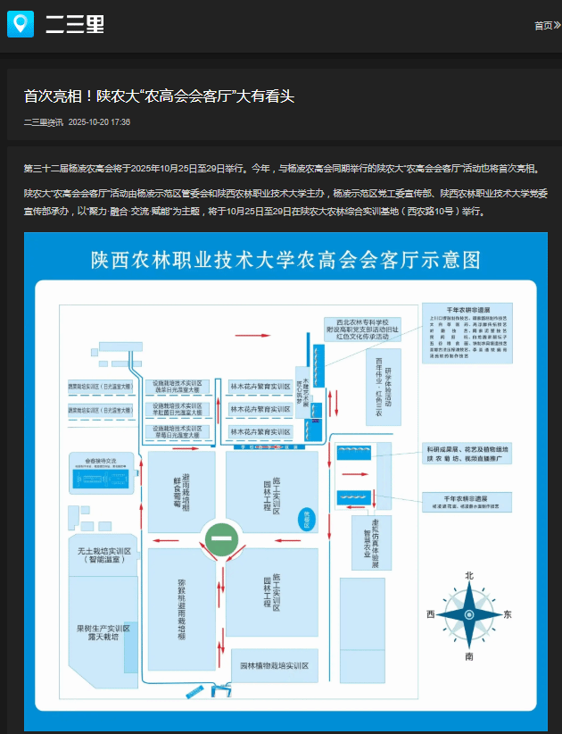 陕农大“农高会会客厅”活动由杨凌示范区管委会和陕西农林职业技术大学主办,杨凌示范区党工委宣传部、陕西农林职业技术大学党委宣传部承办,以“聚力·融合·交流·赋能”为主题,将于10月25日至29日在陕农大农林综合实训基地(西农路10号)举行。