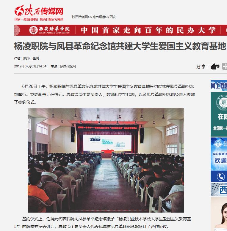 杨凌职业技术学院与凤县革命纪念馆举行共建大学生爱国主义教育基地揭牌仪式,有利于整合高校资源,推动校地合作,努力建设新时代合格的社会主义接班人。(通讯员 姚萍 崔晓)