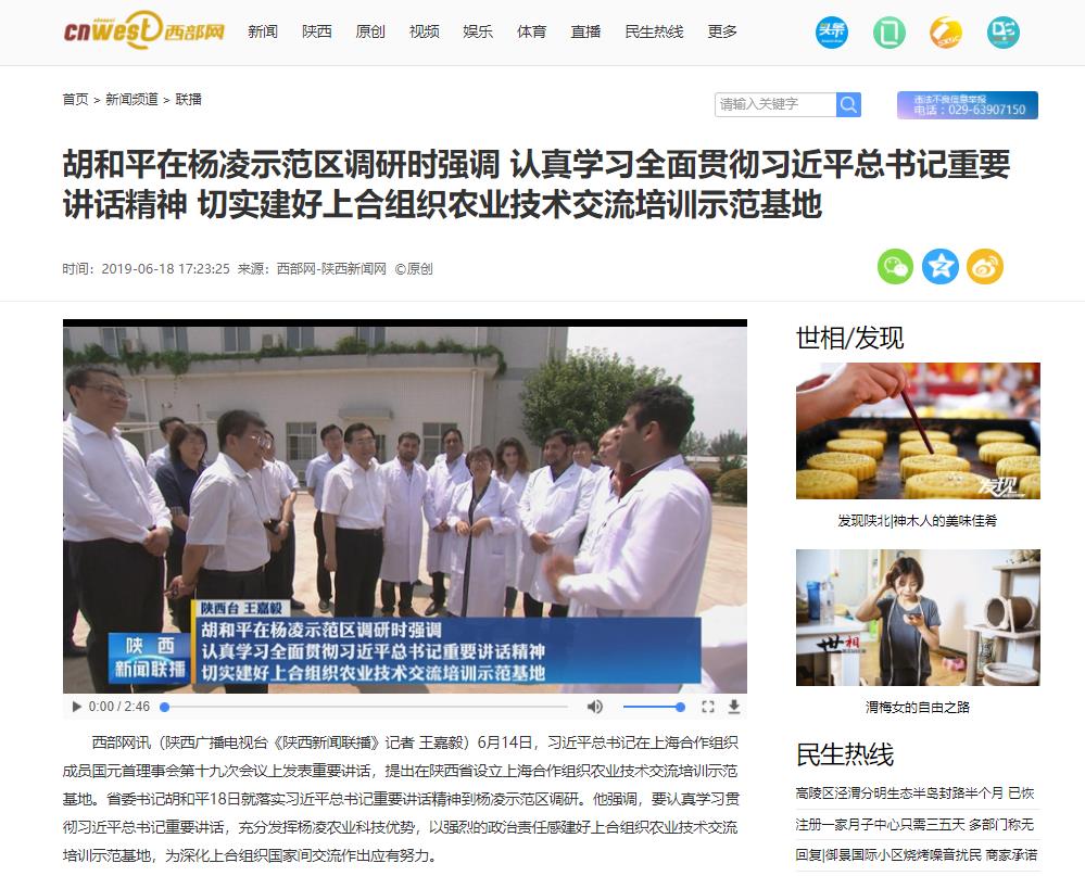 【西部网】胡和平在杨凌示范区调研时强调 认真学习全面贯彻习近平总书记重要讲话精神 切实建好上合组织农业技术交流培训示范基地