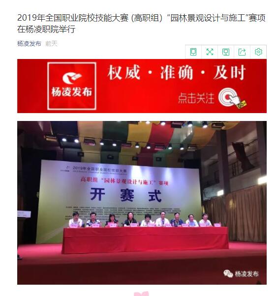 5月31日下午,2019年全国职业院校技能大赛(高职组)“园林景观设计与施工”赛项在杨凌职业技术学院开赛,来自全国各地57支代表队的228名参赛选手将同台竞技。国家林业和草原局人事司巡视员丁立新,杨凌职业技术学院党委书记陈宁,杨凌职业技术学院院长王周锁出席开幕仪式。