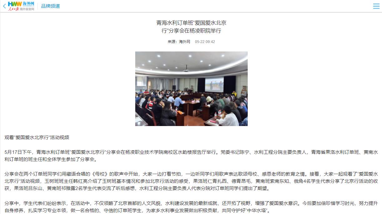 【人民日报海外网】青海水利订单班“爱国爱水北京行”分享会在杨凌职院举行
