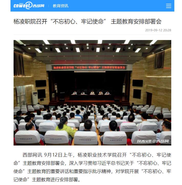 【西部网】杨凌职院召开“不忘初心、牢记使命” 主题教育安排部署会