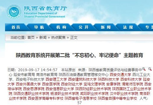 9月12日上午,该院召开“不忘初心、牢记使命”主题教育安排部署会,对学院开展“不忘初心、牢记使命”主题教育进行安排部署。陕西省委教育工委、省教育厅“不忘初心、牢记使命”主题教育第一巡回指导组组长、西安邮电大学原党委书记崔智林在讲话中强调,以县处级以上领导干部为重点,在全党开展“不忘初心、牢记使命”主题教育,是党的十九大作出的重大决策,是推动全面从严治党向纵深发展、把党的自我革命推向深入的重大举措。该院要切实聚焦主线,牢牢扭住根本任务;要切实把准要求,统筹推进四项重点措施;要切实突出重点,发挥示范引领作用;要切实解决问题,务求取得实在成效;要切实从严从实,力戒形式主义官僚主义。他表示,巡回指导组将按照中省决策部署和有关要求,紧紧依靠学院党委开展工作,并深入基层一线了解情况,突出重点环节、重点内容,从严指导、从严要求,提出工作建议,切实做好主题教育巡回指导工作。该院党委书记陈宁在安排部署中指出,开展“不忘初心、牢记使命”主题教育是强化创新理论武装的重要举措、不断深化党内教育的重要实践、落实管党治党责任的重要内容、推动工作有效落实的重要契机,全体党员干部要提高政治站位,深刻认识开展主题教育的重大意义,切实抓好贯彻落实。要把握目标要求,紧密结合学院工作实际开展主题教育,一是把学习教育贯穿始终,以理论武装守初心;二是把调查研究贯穿始终,改进作风担使命;三是把检视问题贯穿始终,查找差距补短板;四是把整改落实贯穿始终,狠抓落实见成效。要强化责任担当,加强统筹协调,加强舆论宣传,确保主题教育取得实效,努力开创学院发展新局面。会上,该院党委副书记任得元传达了中央和省委“不忘初心、牢记使命”主题教育第一批总结暨第二批部署会精神,以及委厅第二批“不忘初心、牢记使命”主题教育工作会精神。