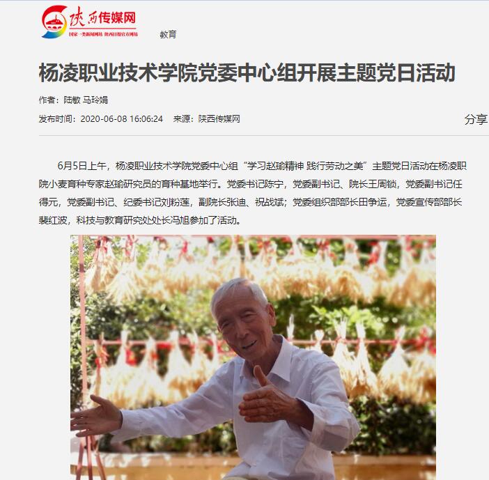 【陕西传媒网】杨凌职业技术学院党委中心组开展主题党日活动