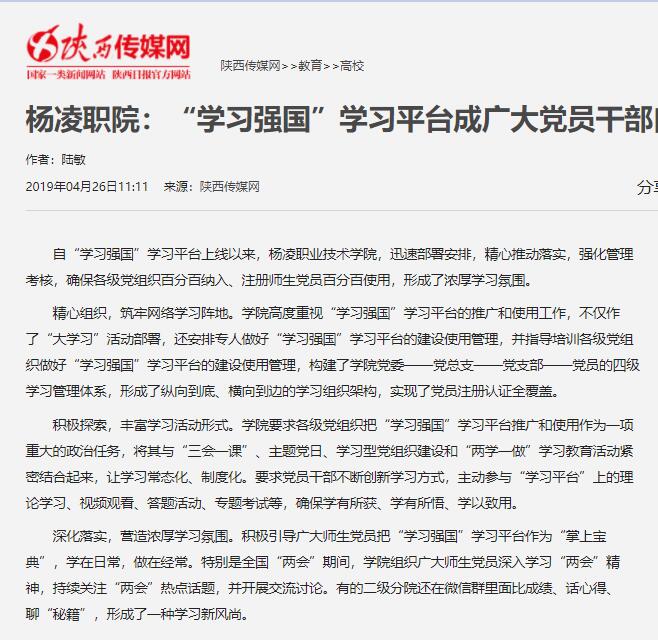 【陕西传媒网】杨凌职院:“学习强国”学习平台成广大党员干部自助“加油站”