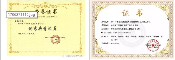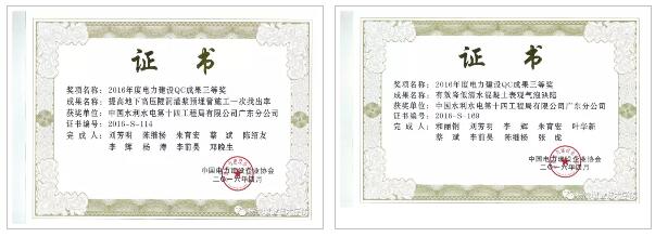 2017年,2月、3月获中华人民共和国国家知识产权局授予的发明专利;4月获中国电力建设企业协会颁发的QC成果三等奖。