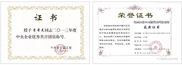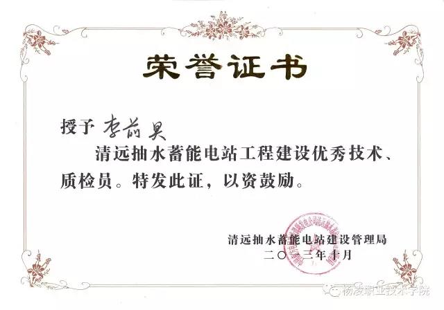 吃苦耐劳,认真工作,就一定会有回报。2013年10月,李前昊荣获清远蓄能发电有限公司颁发的工程建设优秀技术、质检员。