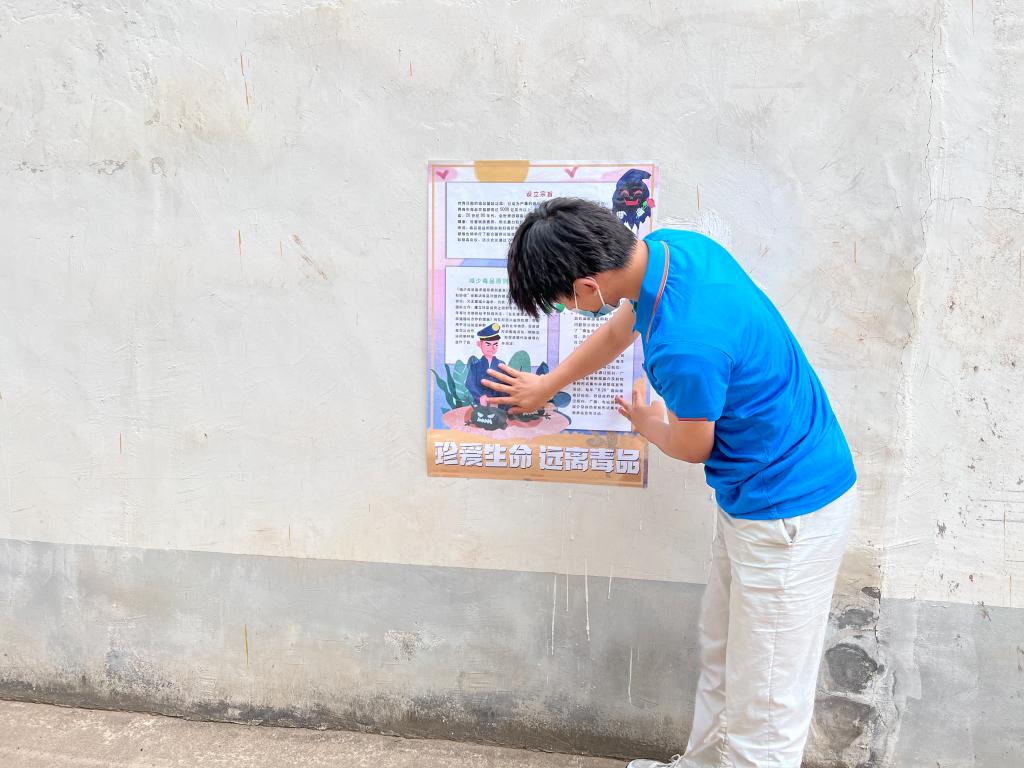 学习禁毒知识,共建法治乡村。团队成员们在村里张贴横幅、海报,向村民发放了宣传手册,介绍了常见毒品、艾滋病的传播途径等,普及了相关的法律法规,让村民进一步了解什么是毒品、毒品的种类、如何识别以及毒品对个人、家庭、社会、国家的危害,强调了预防艾滋病的重要性,从而增强自我保护意识,做到远离毒品,预防艾滋,健康生活。