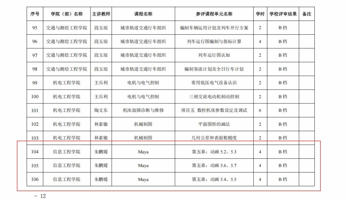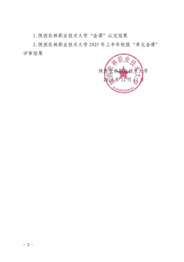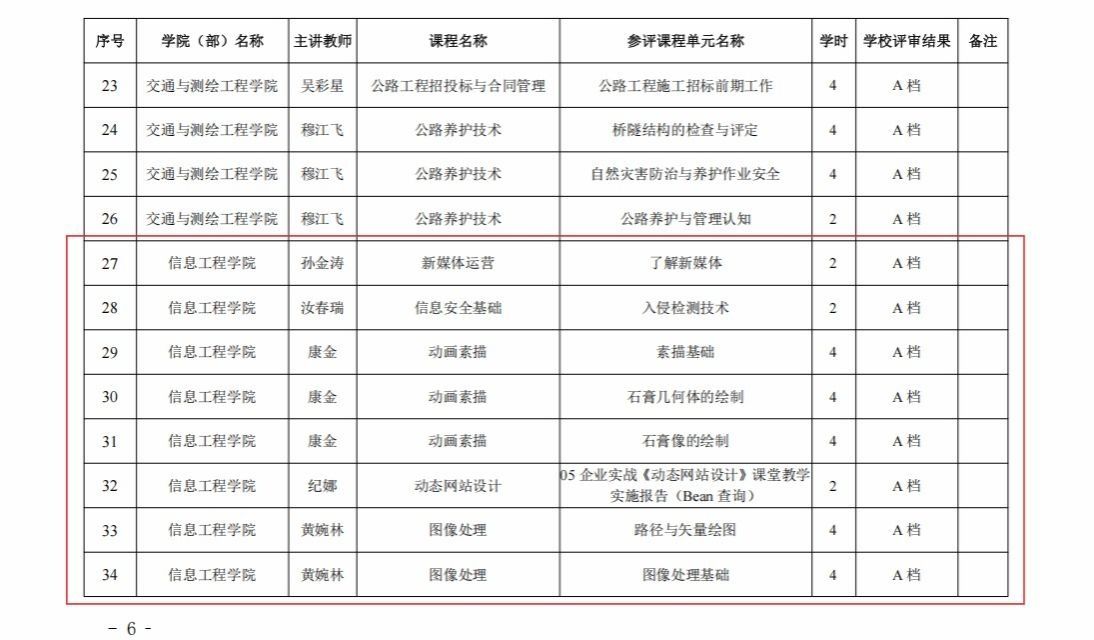 12月15日,陕西农林职业技术大学2025年下半年校级“单元金课” 评审结果公布,信息工程学院教师黄婉林主讲的《图像处理》、康金主讲的《动画素描》课程获得校级“金课”认定。本次共有65个“单元金课”评审通过,其中A档16个,B档22个,C档27个。