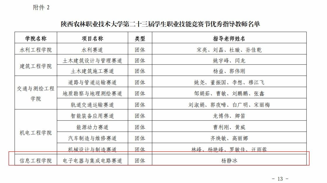 2025年12月25日,陕西农林职业技术大学发布《关于表彰第二十三届学生职业技能竞赛节获奖学生和优秀指导教师的通报》。我院董昊等56名学生以及杨静冰等5名指导教师获得学校表彰。